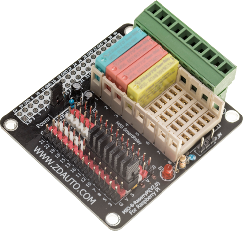 The M5S I/O modules allow switching of external circuits and input of external circuits with higher voltages than directly allowed on the Raspberry Pi, e.g. 24 V or 230 V.